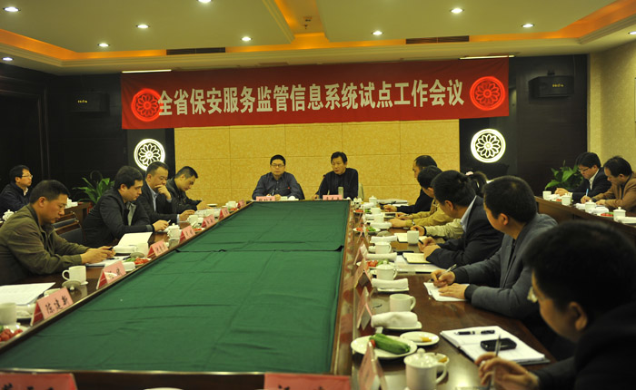 會議上,與會人員觀摩了保安服務(wù)監(jiān)管信息系統(tǒng)操作演示,并圍繞有關(guān)工作進行了討論,省廳治安局賁志平副局長出席會議并作出重要講話。