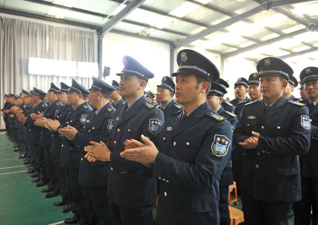 會議內(nèi)容和安排一切從簡,有四項議程,一是播放年度總結(jié)PPT文件,二是宣讀表彰人員名單,三是部門遞交責任狀,最后總經(jīng)理婁伯翱講話。押運大隊市區(qū)押運員和駐各縣隊員代表;機關各部門人員以及各分公司員工代表近700人參加了會議。