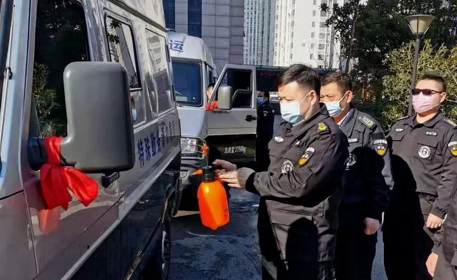 押運(yùn)隊(duì)伍在出車前和返回公司后,加強(qiáng)對(duì)個(gè)人裝備和運(yùn)鈔車的消毒工作,并安排專人每日對(duì)押運(yùn)裝備和押運(yùn)辦公場(chǎng)所進(jìn)行消毒,確保押運(yùn)過程零傳染。
