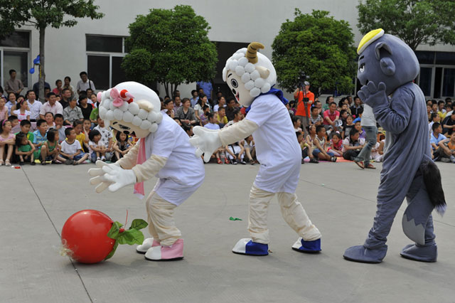 下午兩點(diǎn)多,天空格外的湛藍(lán),孩子們陸陸續(xù)續(xù)走進(jìn)公司院內(nèi),到處充滿了節(jié)日的氣息,樹上、墻上都掛滿了氣球和彩帶,一副熱鬧的景象。還有可愛的卡通人物喜羊羊與美羊羊、灰太狼和米妮在院子里給孩子們派發(fā)甜蜜的糖果,讓孩子們洋溢在快樂中。