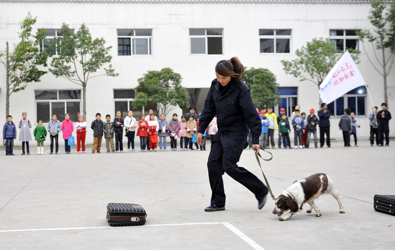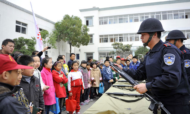 2011年11月19日,淮安日報、淮海晚報50余名小記者走進總公司.小記者們觀看了保安部擒敵技術(shù)表演、押運部槍械操表演和槍支分解結(jié)合表演以及警犬表演等。
