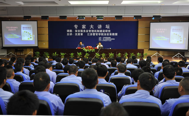2012年5月19日,江蘇警官學院教授沈惠章在淮安警官學院以“保安服務業(yè)管理機制建設研究”為內(nèi)容進行了一天的講座,公司保安隊伍和有關部門骨干近200人聆聽了講座,并針對保安業(yè)情況與沈教授進行了交流和溝通。