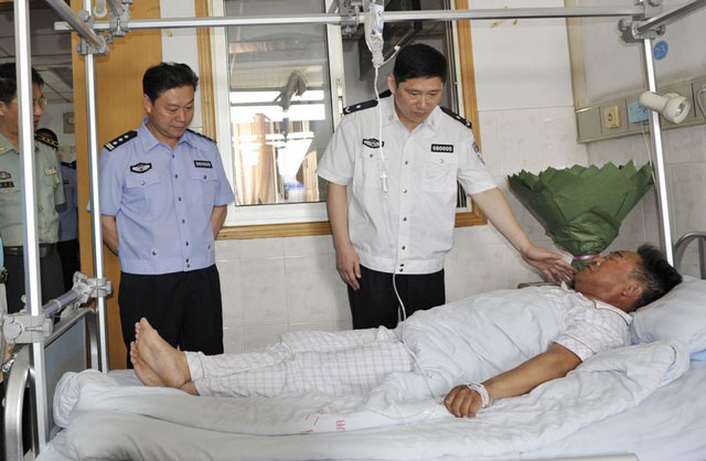 7月30日上午,市公安局徐乾副局長(zhǎng)在交巡警支隊(duì)蘇必偉支隊(duì)長(zhǎng)和公司婁伯翱總經(jīng)理等領(lǐng)導(dǎo)的陪同下,前往八二醫(yī)院看望慰問(wèn)了因公負(fù)傷的我公司保安四大隊(duì)交通協(xié)管員孫長(zhǎng)如,詳細(xì)詢問(wèn)了受傷經(jīng)過(guò)和治療情況,囑咐他好好養(yǎng)傷,祝他早日康復(fù),并送上了慰問(wèn)金。