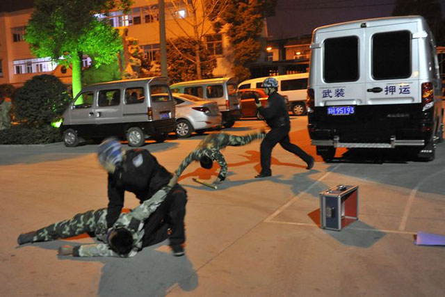 押運中心舉行防搶劫防暴演練