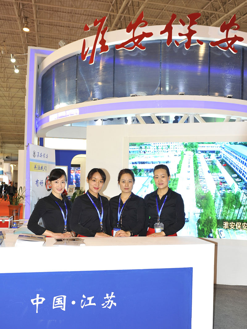 淮安保安在本次博覽會上第二次精彩亮相,將淮安保安海外服務(wù);長途押運服務(wù);大型活動一站式安保服務(wù);動產(chǎn)質(zhì)押監(jiān)管服務(wù);隨身護衛(wèi)服務(wù)以及開辦中專學(xué)歷教育;公司企業(yè)文化等特色服務(wù)在展會上進行了宣傳推介。同時安排了中國書畫協(xié)會會員,總公司藝術(shù)顧問徐增科、中國書法家協(xié)會會員,總公司行政總監(jiān)陳忠軍現(xiàn)場贈送書畫作品。并展示茶藝,通過創(chuàng)新特色展示,豐富的企業(yè)文化吸引了眾多的參展觀眾。在現(xiàn)場,公司技術(shù)部向大家展示了專業(yè)的技術(shù)產(chǎn)品??偣镜男麄髡拱逑虼蠹页浞终宫F(xiàn)了淮安保安一站式服務(wù),并創(chuàng)開辦保安三年制專業(yè)中專班為保安行業(yè)培養(yǎng)后續(xù)人才的新理念吸引了合作伙伴的會談,本次展會,淮安保安的亮相取得了圓滿的成功。在三天的展會期間,總公司組織了人防中心、押運中心等分支部門100余名部門骨干共4批次來京參觀展會,向參展的同行和企業(yè)學(xué)習(xí)經(jīng)驗、交流互進。