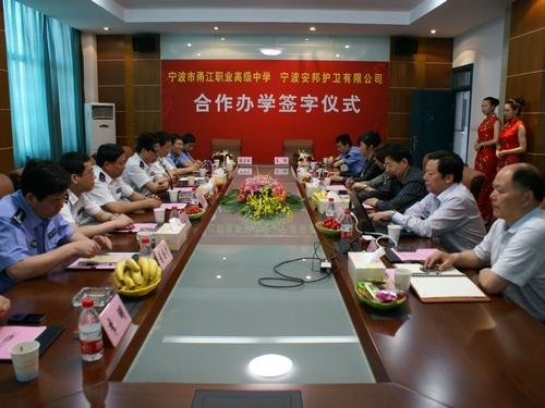 為提升員工隊(duì)伍整體素質(zhì),確保隊(duì)伍建設(shè)工作穩(wěn)定有序開展,經(jīng)寧波市公安局黨委研究同意,寧波安邦護(hù)衛(wèi)有限公司和寧波甬江職業(yè)高級(jí)中學(xué)本著“資源共享、優(yōu)勢(shì)互補(bǔ)、精誠合作、互利雙贏”原則,通過多次協(xié)商,就校企聯(lián)合辦學(xué)事宜達(dá)成協(xié)議,將于今年在甬江職高設(shè)立2個(gè)“安邦護(hù)衛(wèi)班”,采用專門教學(xué)課程,實(shí)施訂單式教育培訓(xùn)。5月19日,雙方在甬江職高行政樓4樓會(huì)議室舉行合作辦學(xué)簽字儀式,公司總經(jīng)理張正逸和甬江職高校長王陽聯(lián)合簽署了合作辦學(xué)協(xié)議,市公安局黨委委員、副局長王偉標(biāo)、治安支隊(duì)支隊(duì)長蔡利豐、經(jīng)文保支隊(duì)副支隊(duì)長王國榮,市教育局副局長張力鳴、職教處處長李麗等領(lǐng)導(dǎo)應(yīng)邀出席并講話。