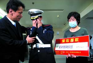 就在記者采訪小悅悅父母的時(shí)候,旁邊的一個(gè)年輕女孩突然往小悅悅母親手中塞進(jìn)100元現(xiàn)金,“給孩子買點(diǎn)東西吃吧?!比缓箢^也不回地走進(jìn)電梯。