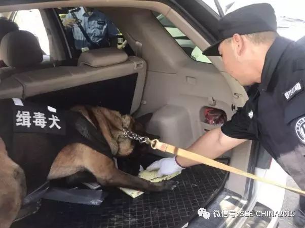 檢查中,訓(xùn)導(dǎo)員攜緝毒犬配合巡邏民警在岱山檢測(cè)站對(duì)過(guò)往車(chē)輛逐一排查。排查時(shí),緝毒犬“大奔”在一輛白色越野車(chē)后備箱發(fā)現(xiàn)可疑物,立即臥下示警,現(xiàn)場(chǎng)民警果斷對(duì)嫌疑人及車(chē)輛進(jìn)行控制,并迅速帶離現(xiàn)場(chǎng)進(jìn)行盤(pán)查,整個(gè)排查工作有序進(jìn)行。