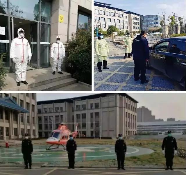 他們不畏艱險(xiǎn),把守著醫(yī)院的出入口,奮戰(zhàn)在發(fā)熱門診、醫(yī)生專用通道、病患者通道等醫(yī)院的第一線;他們協(xié)助進(jìn)行體溫監(jiān)測(cè),轉(zhuǎn)運(yùn)和分發(fā)防各類疫物資,深入重癥病房樓層轉(zhuǎn)運(yùn)病床;他們時(shí)刻守護(hù)白衣天使身邊,守護(hù)國(guó)家醫(yī)療隊(duì),護(hù)衛(wèi)院士安全;他們幫助平復(fù)病患情緒,主動(dòng)調(diào)解各類糾紛,維持醫(yī)院秩序……