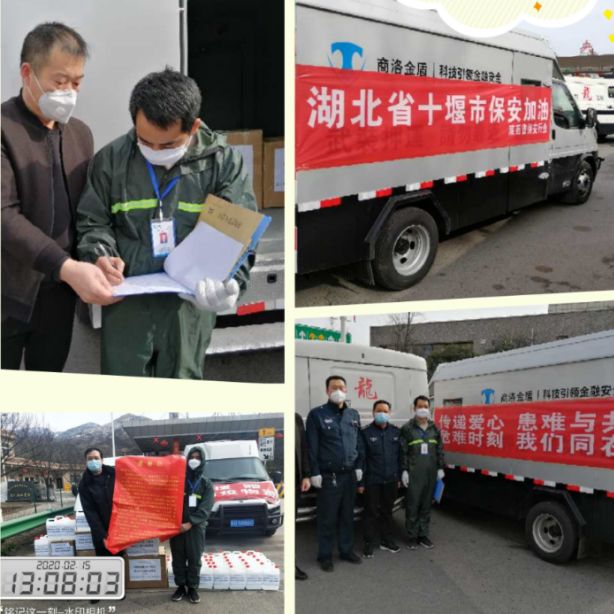 2月15日,陜西省保安協(xié)會(huì)向湖北省十堰市捐贈(zèng)防疫物資,途徑商洛市,但當(dāng)時(shí)此地對(duì)外地車(chē)輛實(shí)行交通管制,無(wú)法通過(guò)常規(guī)運(yùn)輸把物資運(yùn)送到湖北十堰。對(duì)此,商洛金盾志愿響應(yīng)陜西省保安協(xié)會(huì)的運(yùn)輸需求,采取接力運(yùn)送的方式驅(qū)車(chē)前往西安,與陜西省保安協(xié)會(huì)成功交接防疫物資后,將捐贈(zèng)物資全部轉(zhuǎn)運(yùn)至湖北省十堰市高速路口關(guān)卡,順利交至當(dāng)?shù)亟邮沾硖幍墓ぷ魅藛T手中。