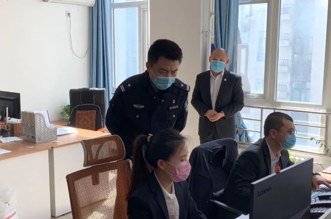 2020年3月19日,北京市公安局治安管理總隊(duì)保安管理支隊(duì)副支隊(duì)長任鵬、警官陳剛,大興區(qū)公安分局保安管理中隊(duì)中隊(duì)長關(guān)景泰,蒞臨中軍軍弘集團(tuán)檢查指導(dǎo)新冠肺炎疫情防控和“清網(wǎng)治違”專項(xiàng)活動(dòng)工作情況。