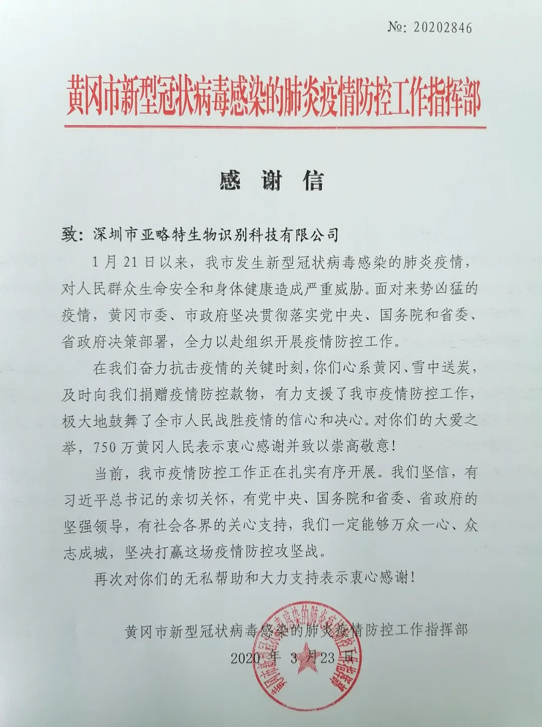 自新冠肺炎疫情開始以來,全國各地積極募資籌款、捐獻(xiàn)物資共抗疫情,支持湖北等地疫情防控。作為中國的創(chuàng)新之都,深圳涌現(xiàn)出一批高科技企業(yè),運(yùn)用科技手段,努力打好疫情防控阻擊戰(zhàn)。深圳市亞略特生物識別科技有限公司就是這樣一家企業(yè),在湖北疫情防控關(guān)鍵時刻,用行動馳援湖北,分別向黃岡、孝感、咸寧三地各捐贈一批AI人臉識別測溫智能終端,支持當(dāng)?shù)匾咔榫珳?zhǔn)防控。