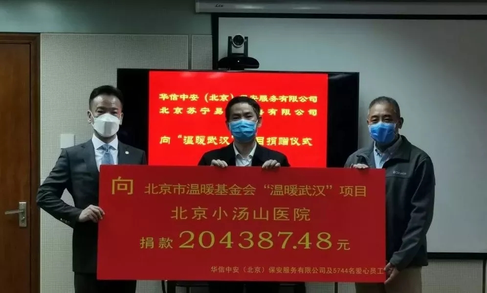 捐贈儀式上華信中安集團(tuán)董事長殷衛(wèi)宏將公司以及5744名愛心員工所捐共計204387.48元的善款捐贈至北京市溫暖基金會,并通過溫暖基金會定向捐贈北京市小湯山醫(yī)院的醫(yī)務(wù)工作者。殷衛(wèi)宏董事長表示,華信中安始終把企業(yè)社會責(zé)任融入公司的發(fā)展戰(zhàn)略中,企業(yè)既是社會繁榮的創(chuàng)造者,也是社會資源的消耗者,企業(yè)與社會共生的關(guān)系就決定了我們必須履行社會責(zé)任。近年來我們先后為汶川、玉樹等災(zāi)區(qū)及北京青少年發(fā)展基金會、希望工程北京捐助中心等機(jī)構(gòu),累計捐款達(dá)300多萬元。同時華信中安作為“北京市保安員專項(xiàng)溫暖基金”創(chuàng)始發(fā)起六家企業(yè)之一,也一貫致力于幫扶全市一線困難保安員。八方攜手共渡難關(guān),萬眾一心抗擊疫情。自疫情爆發(fā)以來,華信中安人全面動員迅速部署積極投身疫情防控的第一線,為駐勤服務(wù)項(xiàng)目織就一張張堅實(shí)穩(wěn)固的防控網(wǎng),同時廣大員工也通過捐款的方式盡己所能為社會注入溫暖力量。我們將善款通過溫暖基金會定向捐贈北京市小湯山醫(yī)院的醫(yī)務(wù)工作者,希望能切實(shí)為醫(yī)務(wù)工作者解決實(shí)際問題,為我們以決戰(zhàn)決勝姿態(tài)奪取抗擊疫情阻擊戰(zhàn)的全面勝利增添信心。