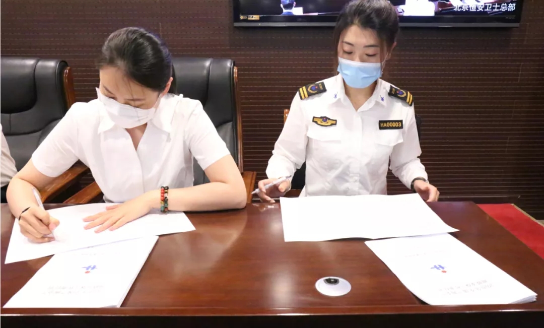 會議期間,恒安衛(wèi)士副總經(jīng)理郭艷茹與北京地鐵1、2號線項目經(jīng)理張麗紅、張二偉,現(xiàn)場簽訂《2020年全國“兩會”地鐵安保工作責(zé)任書》簽訂完畢,董事長現(xiàn)場宣讀《責(zé)任書》相關(guān)工作部署及要求如下: