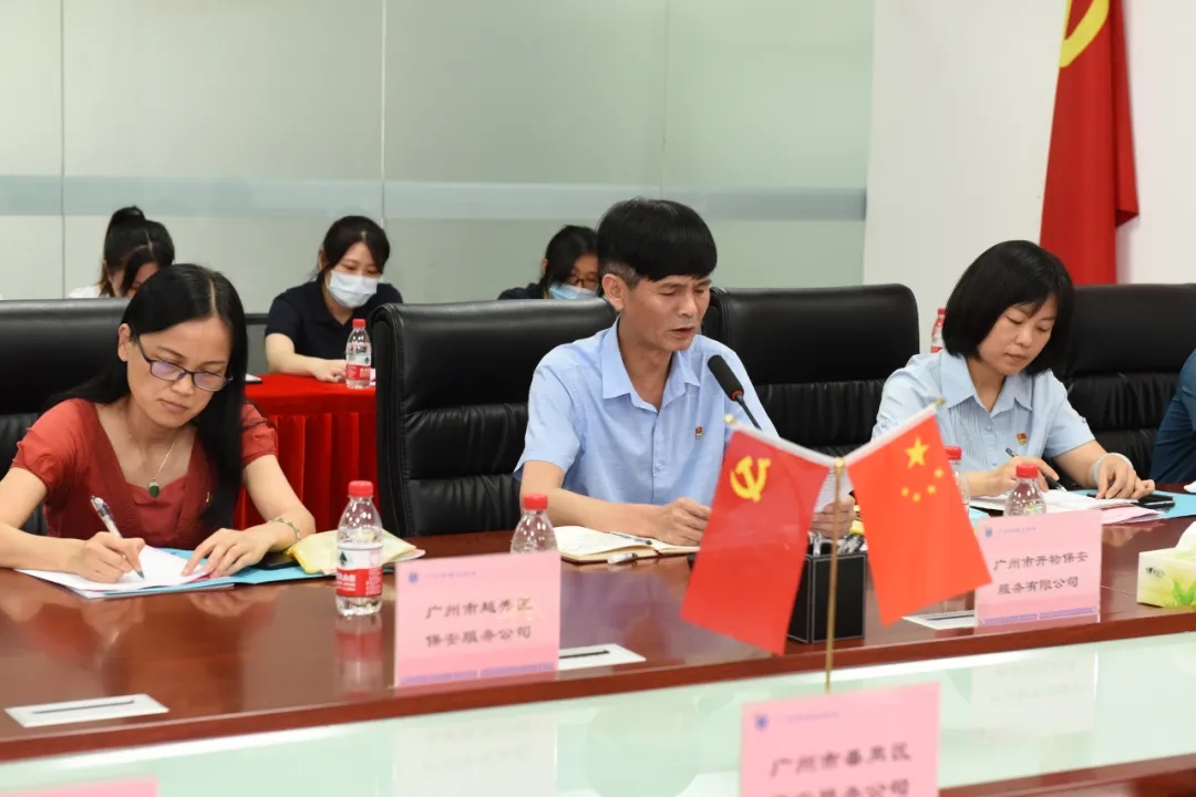 廣州市南沙保安服務(wù)有限公司黨支部書(shū)記劉文超圍繞該公司脫鉤改制后堅(jiān)持黨的領(lǐng)導(dǎo),健全了支部班子,積極推進(jìn)黨組織建設(shè)在國(guó)有企業(yè)高質(zhì)量發(fā)展中起到的作用等工作情況進(jìn)行分享。