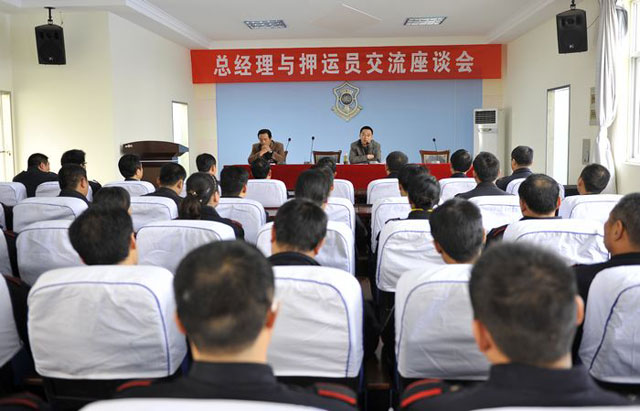 為了進一步加強守護押運隊伍管理,適時掌握一線隊員的思想動態(tài),2010年11月27日上午, 公司在押運中心三樓召開了“總經(jīng)理與押運員面對面交流座談會”。押運中心市區(qū)全體守押人員、縣區(qū)押運員代表和公司各部門負(fù)責(zé)人及機關(guān)部分員工160余人參加了會議。