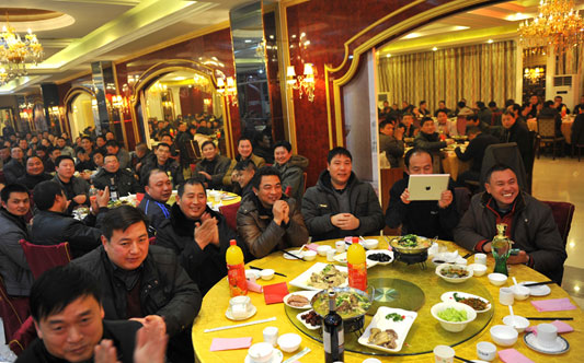 19:18分,晚宴準時開始!首先是在公司工作了20幾年的財務(wù)部李萬晴和消防分公司周鵬上臺講述了自己二十幾年的保安情。講述了曾經(jīng)公司由一窮二白經(jīng)過努力到今天多元化的發(fā)展。緊接著是曾經(jīng)在公司工作過但現(xiàn)在離開的趙長林講述了自己從工作到離開和淮安保安一段難忘的經(jīng)歷。后來,黨委副書記吳淮甫、副總經(jīng)理王克分別上臺講話。最后婁總上臺發(fā)表了熱情洋溢的致辭,感染了在場的每一名員工。婁總對淮安保安未來的發(fā)展充滿信心,也表達了堅定的決心。