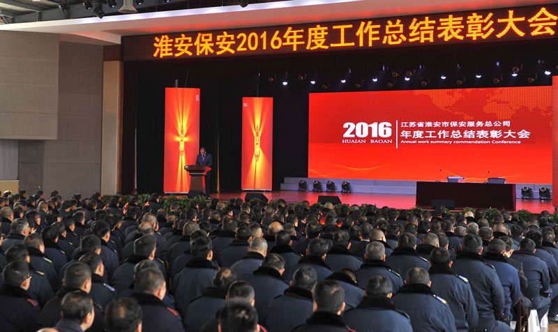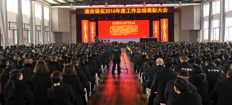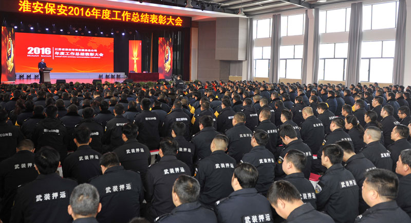 2017年2月26日上午,淮安保安服務(wù)總公司在活動(dòng)中心召開了2016年度工作總結(jié)表彰大會(huì),總公司保安隊(duì)伍分隊(duì)長以上骨干和保安員代表、押運(yùn)隊(duì)伍市區(qū)押運(yùn)員和駐各縣隊(duì)員代表、各分公司員工代表、行政中心各部門人員以及保安中專班學(xué)員共計(jì)近800人參加了會(huì)議。