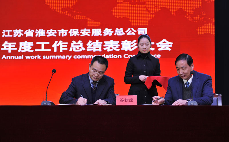 會(huì)議通過多媒體工作報(bào)告對(duì)淮安保安2016年度工作進(jìn)行了總結(jié),表彰了年度工作突出的先進(jìn)集體和先進(jìn)個(gè)人,對(duì)公司2017年度工作進(jìn)行了部署。婁伯翱總經(jīng)理代表總公司與押運(yùn)管理中心、人防管理中心、駐外分公司等13個(gè)部門簽署了2017年度目標(biāo)責(zé)任狀。