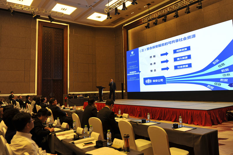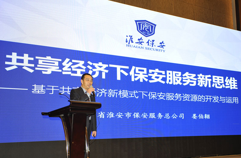 江蘇省淮安市保安服務(wù)總公司總經(jīng)理婁伯翱作《共享經(jīng)濟(jì)下保安服務(wù)新思維》主題演講
