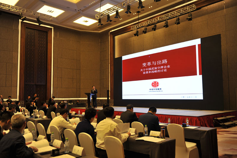 中信外包服務(wù)有限公司總裁沈琛作《中國(guó)武裝守押企業(yè)前景和戰(zhàn)略的討論》主題演講