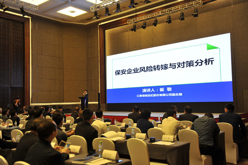 江泰保險(xiǎn)經(jīng)紀(jì)股份有限公司副總裁崔敬作《保安企業(yè)風(fēng)險(xiǎn)轉(zhuǎn)嫁分析與對(duì)策》主題演講