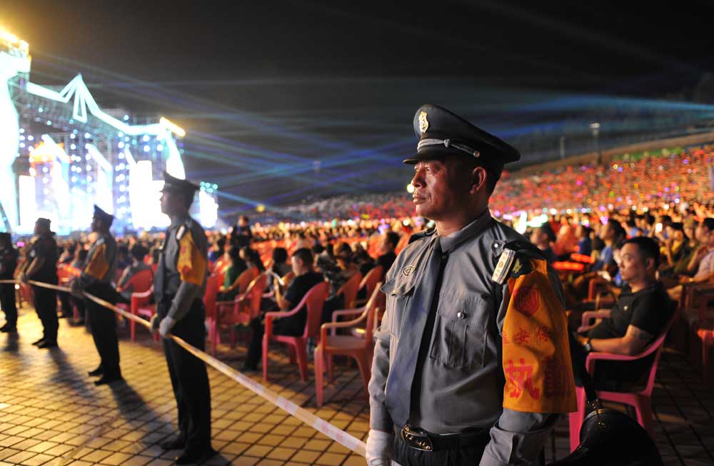由于晚會演出現(xiàn)場地處山腰,給安檢和安保工作帶來一定的難度。為確實做好安保任務(wù),總公司多次召開專項工作會議,統(tǒng)一部署安保工作,人防中心總監(jiān)王錦春先后帶領(lǐng)領(lǐng)導(dǎo)班子多次到盱眙都梁廣場踏勘現(xiàn)場,熟悉崗位,開展現(xiàn)場拉練,研定安保方案??偣狙杆俪闪⑼頃弊C檢查、安全檢查、搜毒搜爆、秩序維護(hù)、安保巡邏、駐地保衛(wèi)、無人機(jī)監(jiān)控、突發(fā)事件處置組等安保小組,同時抽調(diào)行政中心、人防中心、押運中心、科技公司、器材公司、犬防大隊、無人機(jī)飛控隊、保安中專班、銀盾檢測站等部門人員參與安保活動。