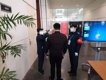 人防中心全體保安員緊繃戰(zhàn)斗神經(jīng),值守在各個崗位。在醫(yī)院防疫一線,他們冒著比常人高很多的感染風險,甚至和一線醫(yī)護人員一樣近距離接觸確診或疑似病例的患者;在市政機關(guān)、銀行、學校等公共場所,他們恪盡職守,認真履職,登記進出人員信息并測量體溫,認真排查發(fā)熱患者及疫源地人員;在企業(yè)單位,他們堅守崗位,針對區(qū)域定時、定點消毒、警戒隔離,用自己的行動為民眾撐起了一片清亮藍天。