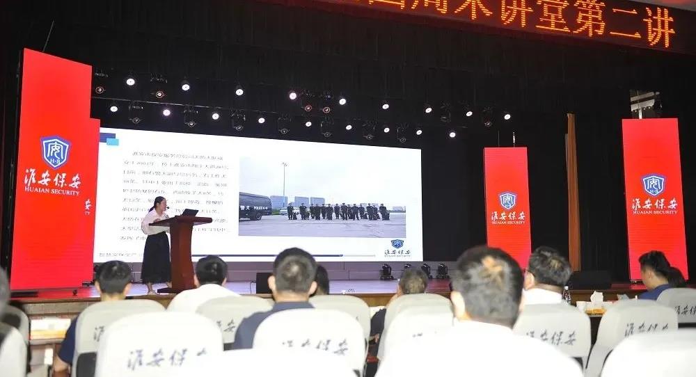 活動中首先播放了保安服務總公司宣傳片。與會者通過宣傳片進一步了解了保安總公司企業(yè)情況和業(yè)務發(fā)展規(guī)模。隨后,保安總公司副總經(jīng)理黃欣晨、技防部副經(jīng)理葛金棟、犬防大隊警犬訓練員胡偉芳三位兼職講師為大家分享了工作中的經(jīng)驗和心得。